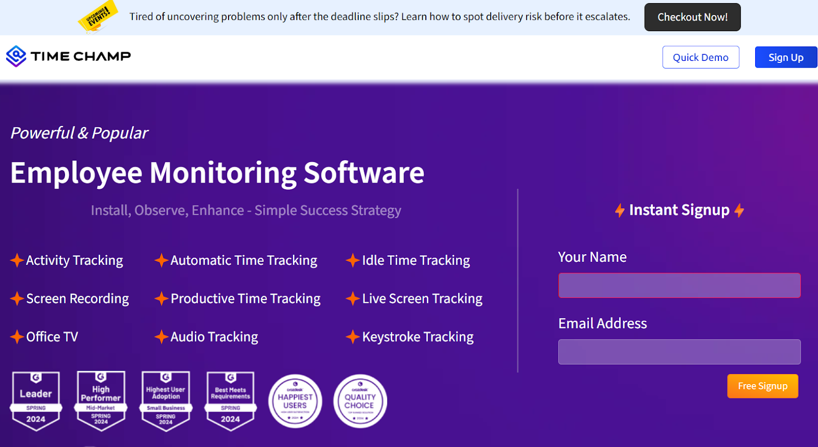 Time Champ is a seasoned workforce analytics and employee monitoring software for boosting productivity and minimizing burnout. It is used for activity tracking, automatic time tracking, screen recording and many more features.